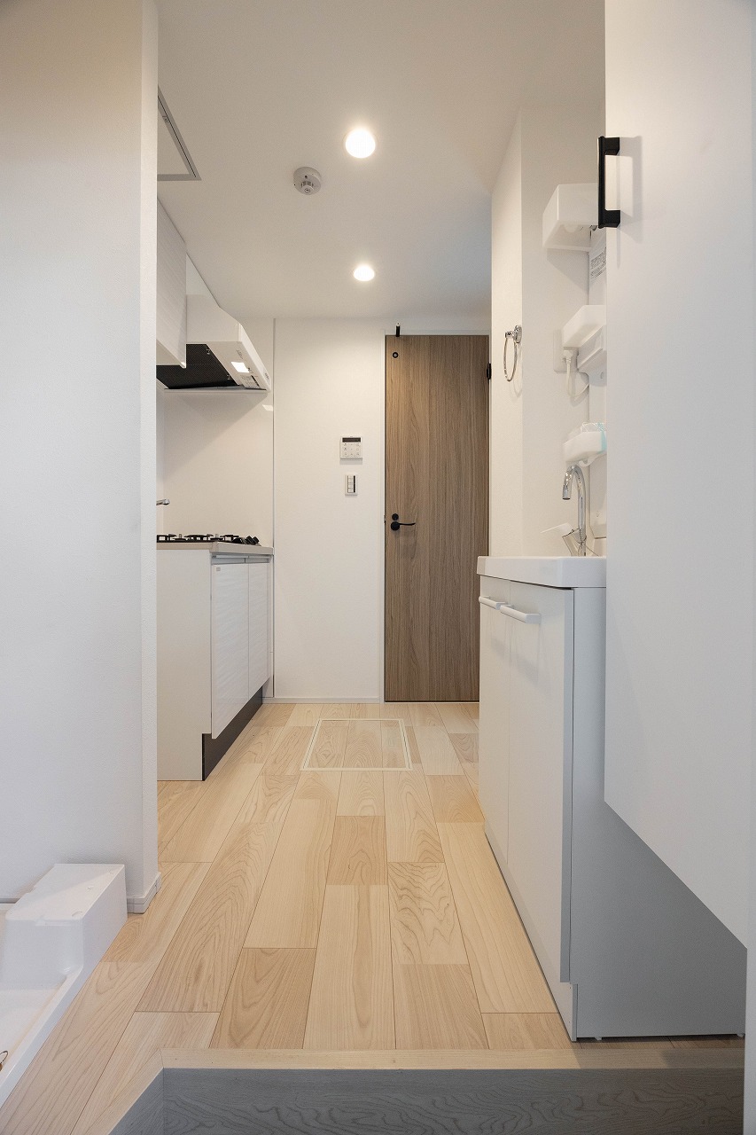 住戸はコンパクトな間取りながら、生活に必要な設備をしっかりと備えている。