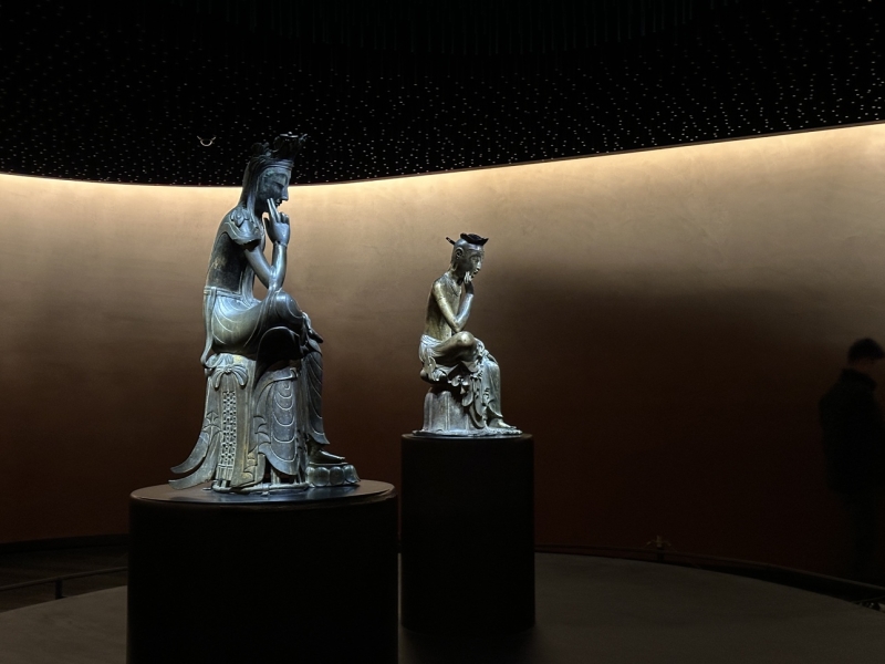国宝「半跏思惟像」 薄暗く瞑想的な空間で、仏像の穏やかな微笑を見つめ危うく「人生とは…」と悟り始めるところでしたが、我に返り、静かに心身をリセットして博物館を後にしました。
