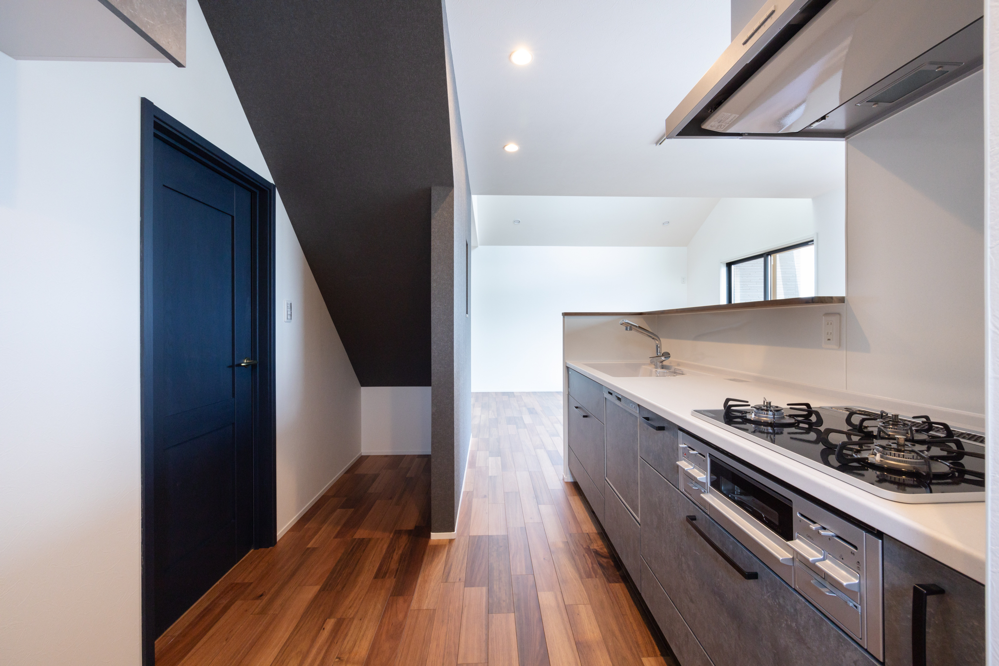 外部空間にも工夫が施されている。隣地からの視線を考慮し、屋根形状などを利用して目隠し効果を持たせたプライベートスカイバルコニーを計画。開放感を確保しながらも視線をコントロールする設計である。