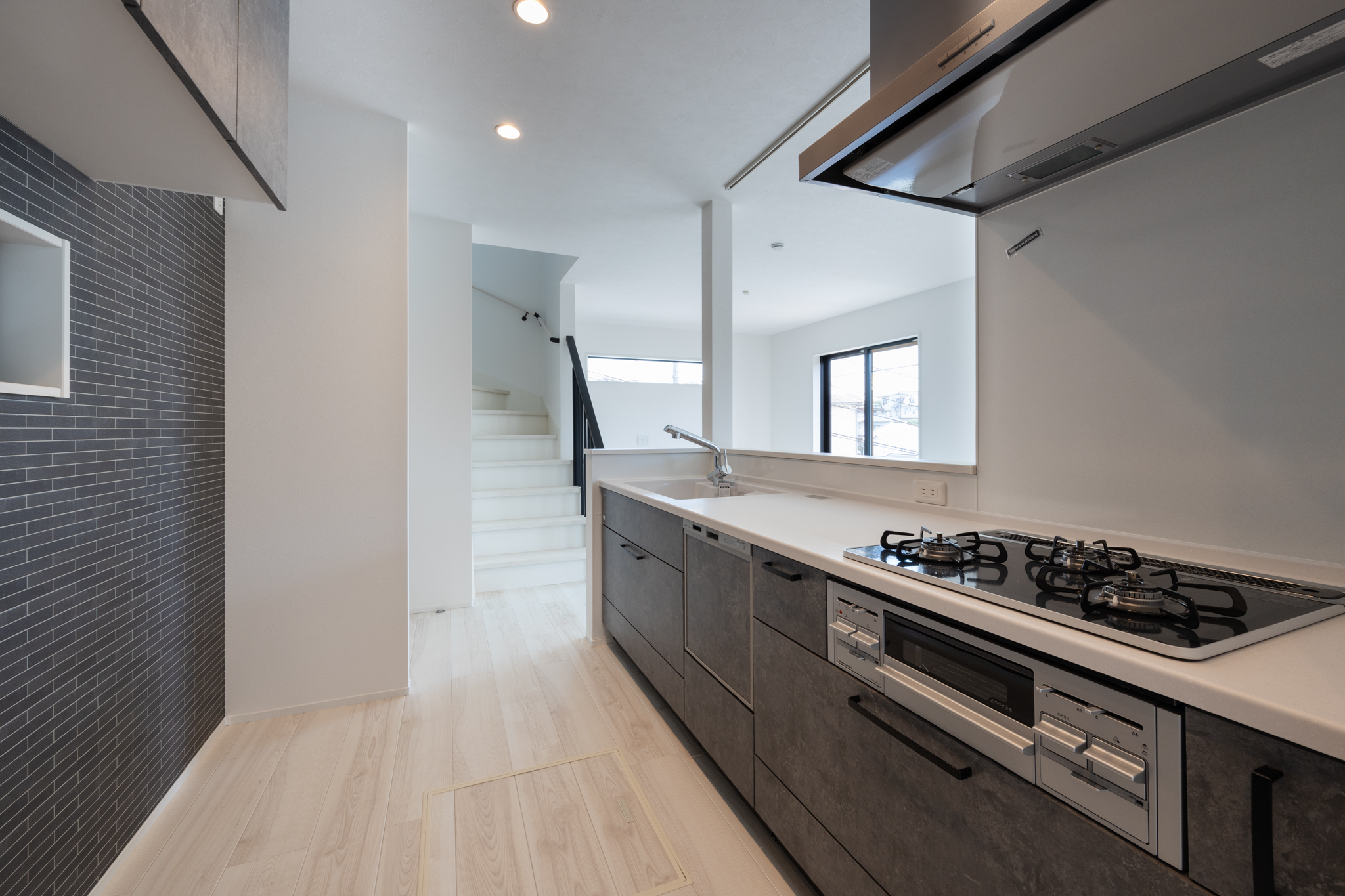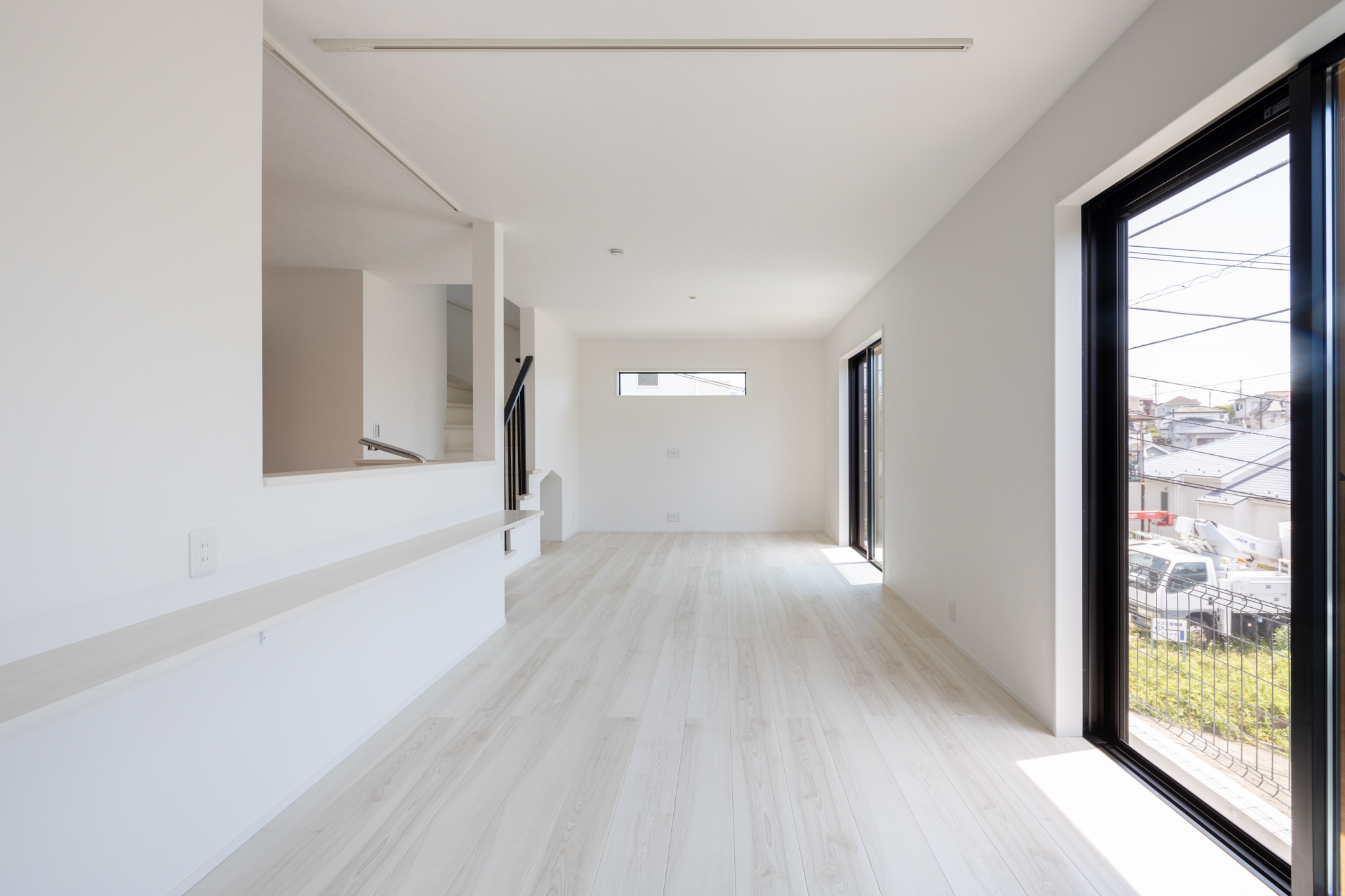 川崎市多摩区に誕生した本物件は、白を基調にグレーをアクセントとして取り入れた内装により、明るさと奥行きを感じさせる空間に仕上げた建売住宅である。