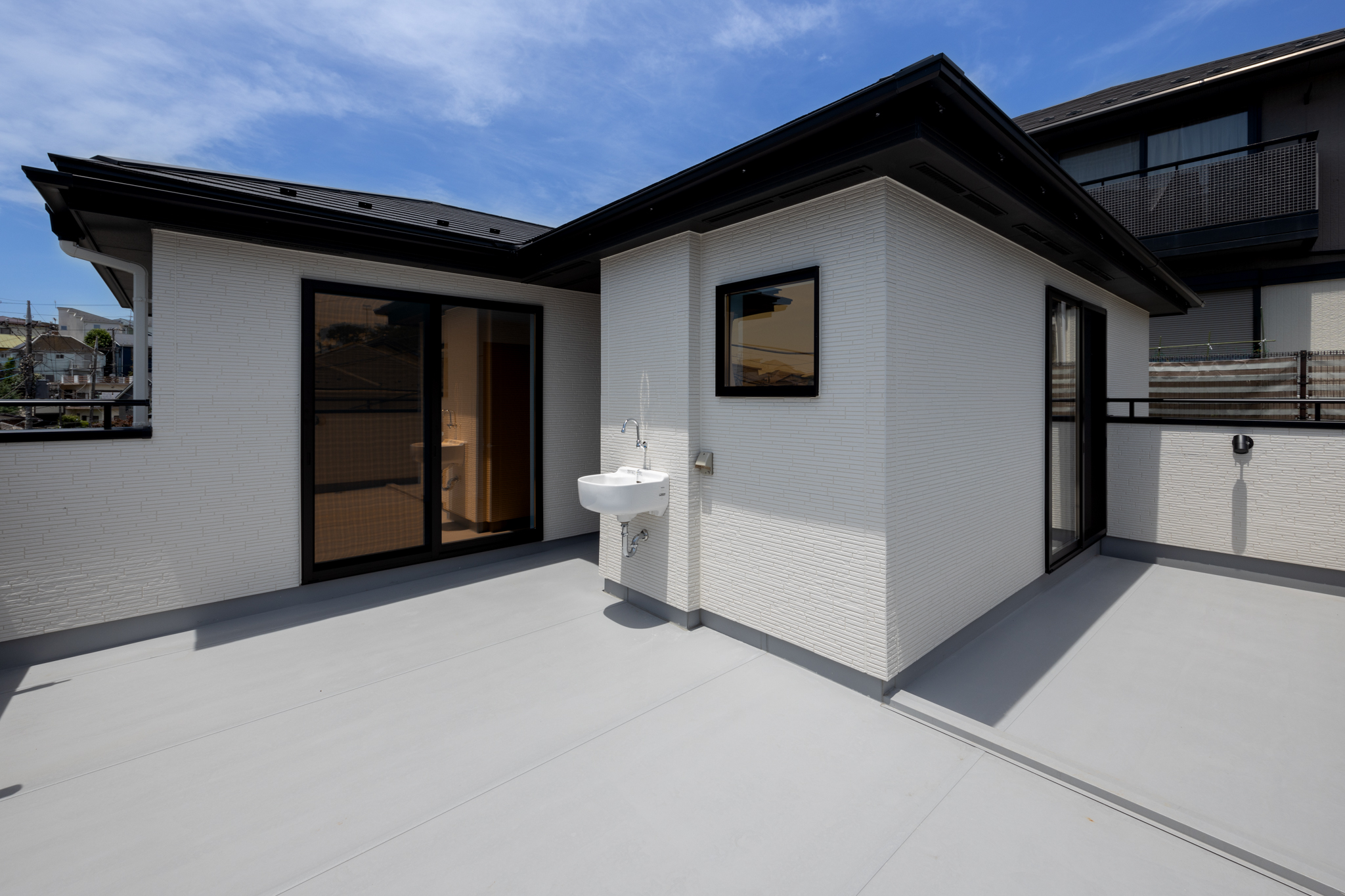 川崎市多摩区の建売住宅施工事例として、LDKの広がりと屋外空間を組み合わせた立体的な住まいづくりが特徴的な一邸である。