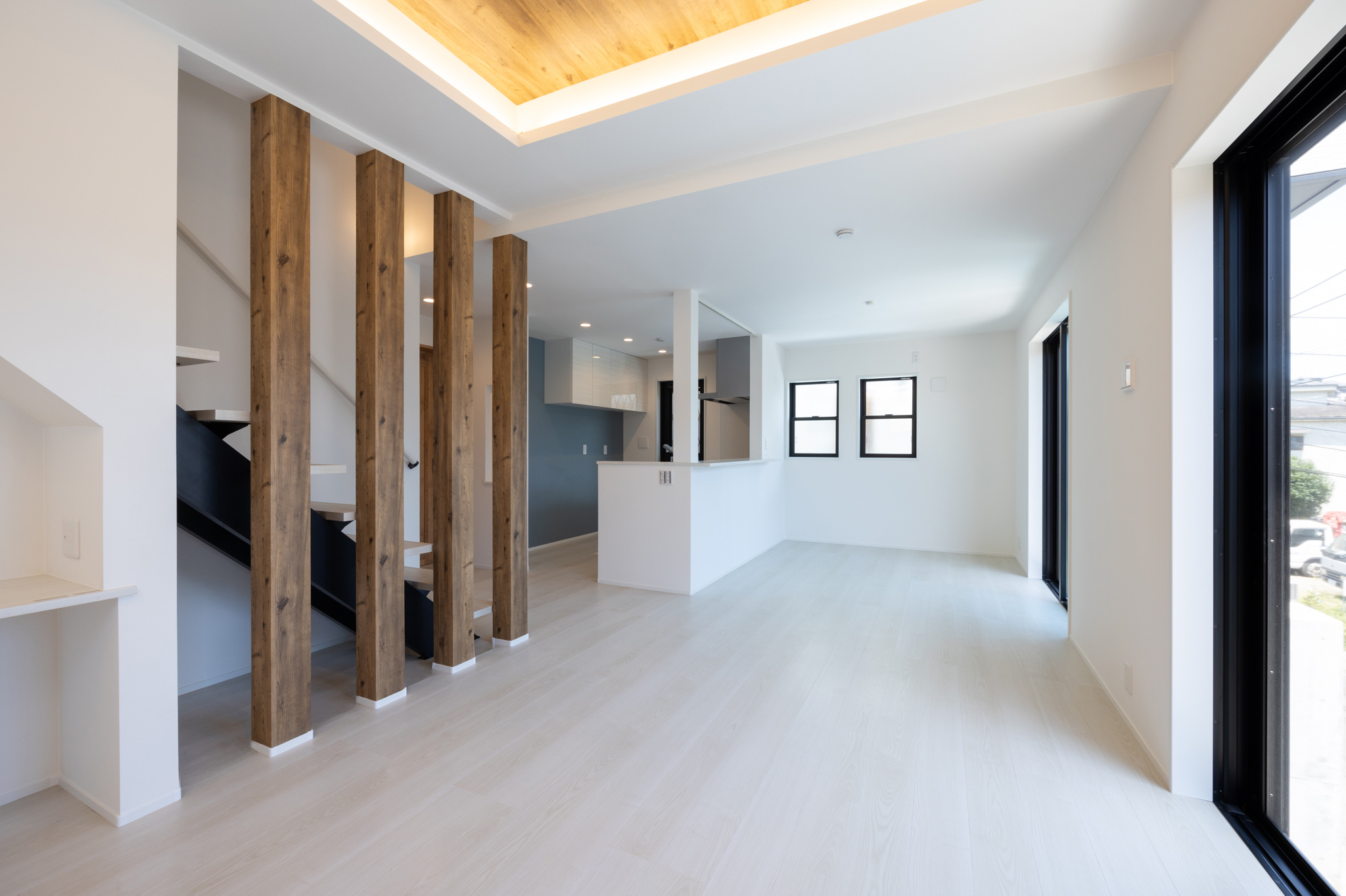 本物件は、白と木目を基調としたやさしいトーンでまとめられた、家族の時間を大切にする川崎市多摩区の建売住宅である。