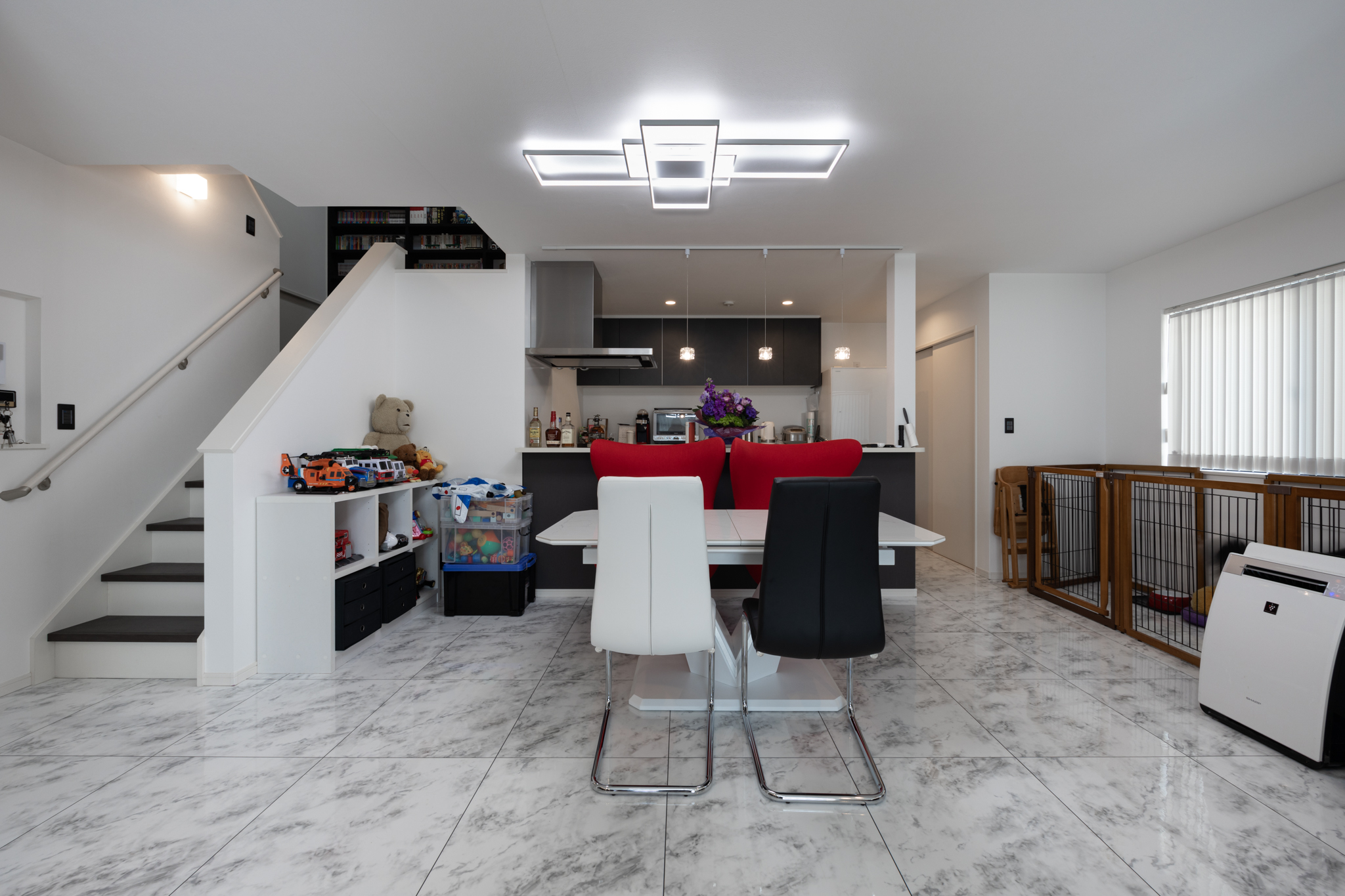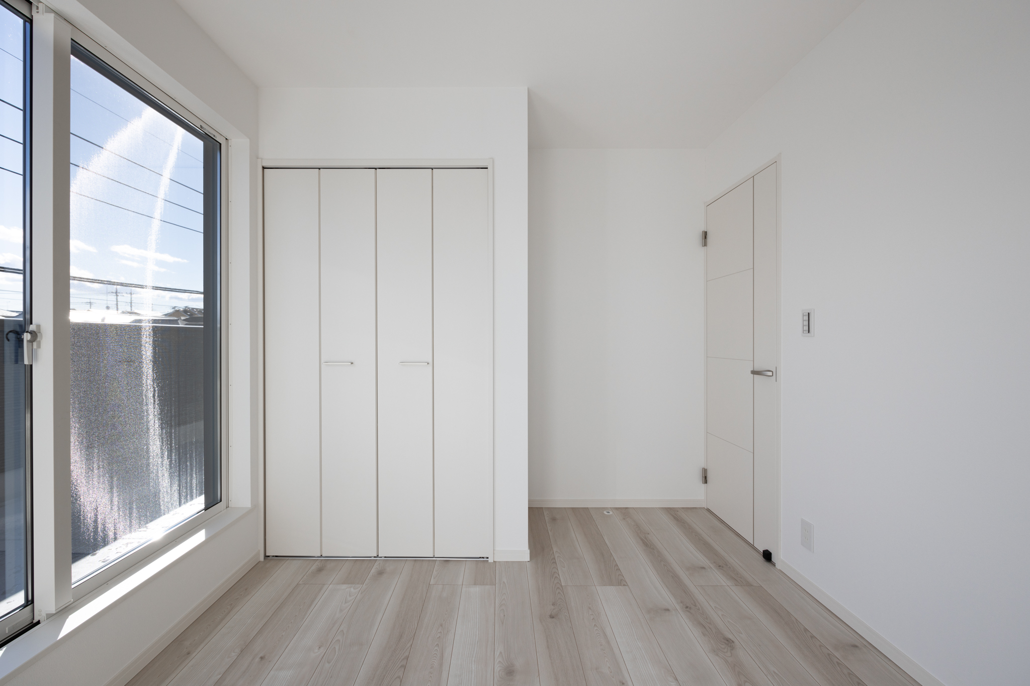 居室には「未来壁」の考え方を取り入れ、将来的に1室を2室へ分けられる構成とすることで、家族構成やライフステージの変化にも柔軟に対応。玄関には両開き扉のシューズインクローゼットとミニ洗面台を設け、来客時の視線に配慮しながら、手洗い習慣を自然に取り入れられる工夫を施した。
