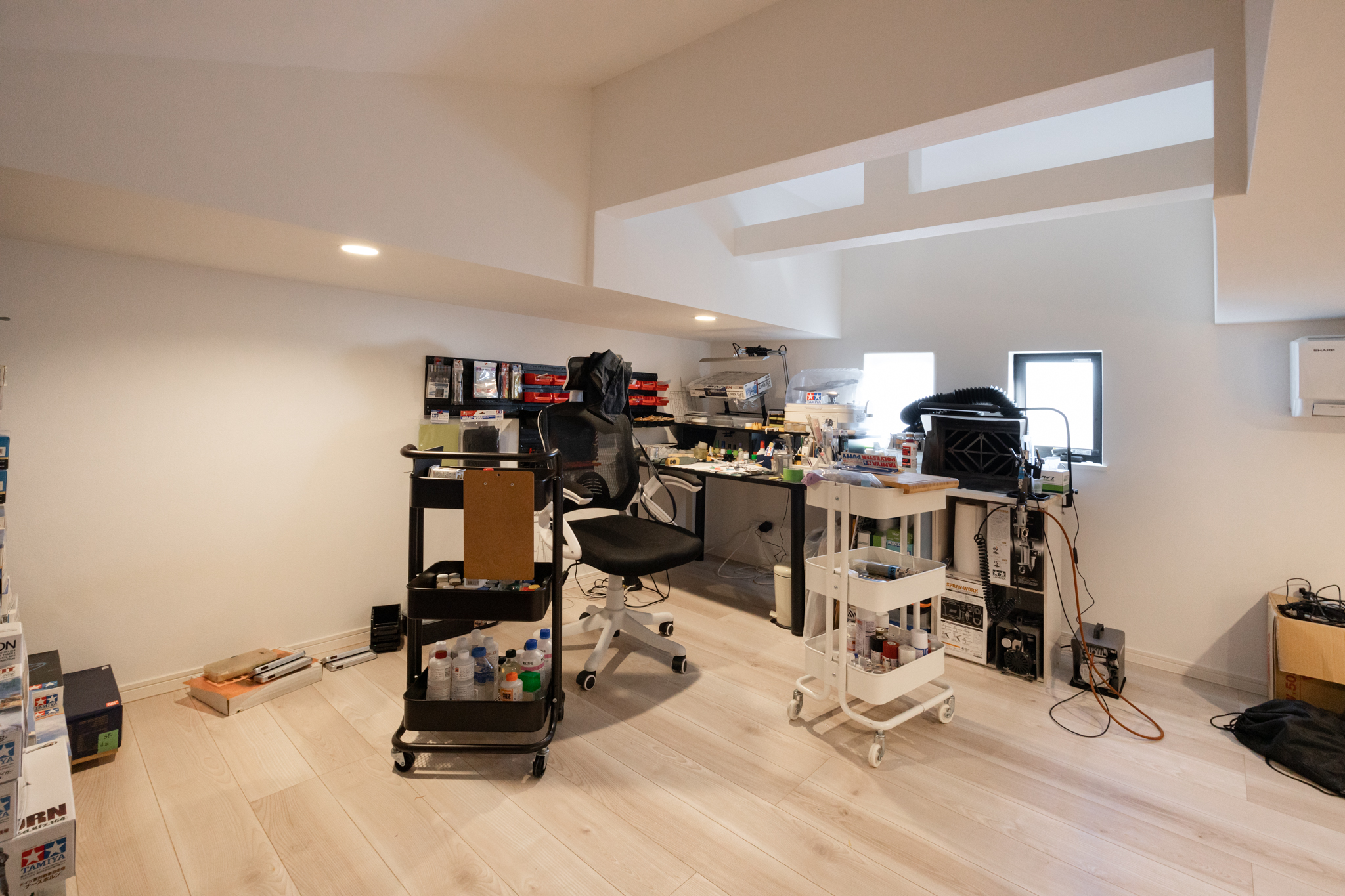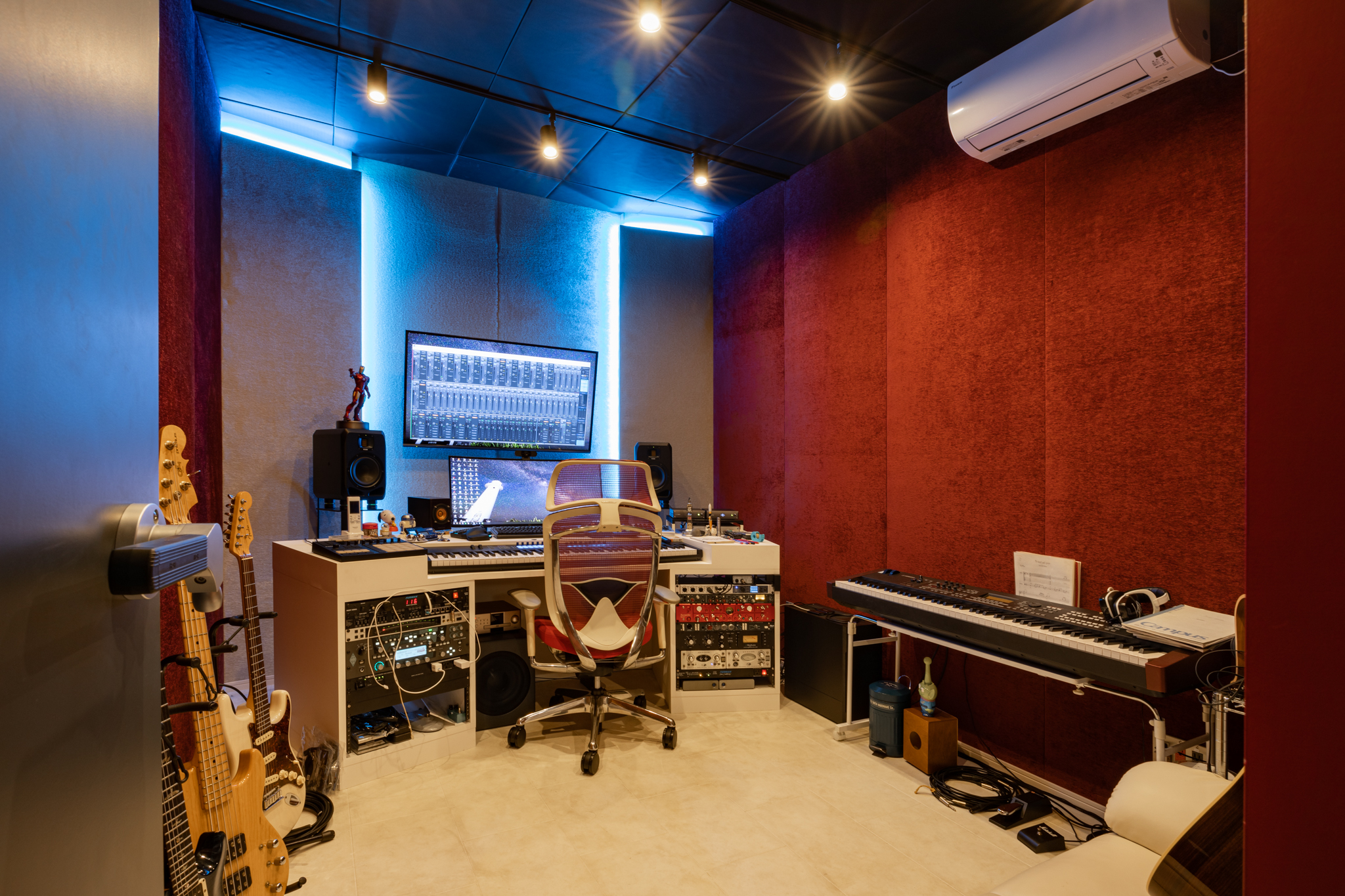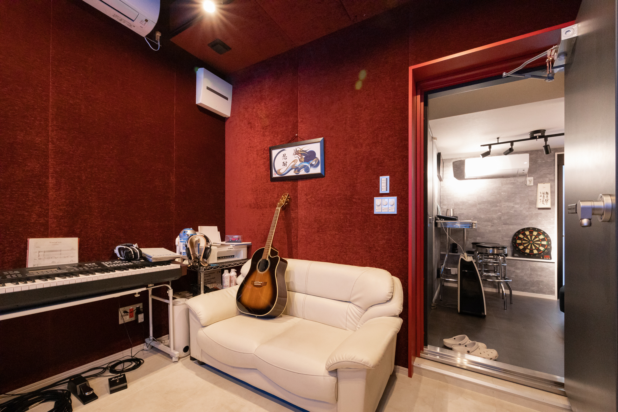 スタジオ空間は複数人が集まれる広さを確保しつつ、高い遮音性を持たせ、生活音から切り離された集中環境を実現している。