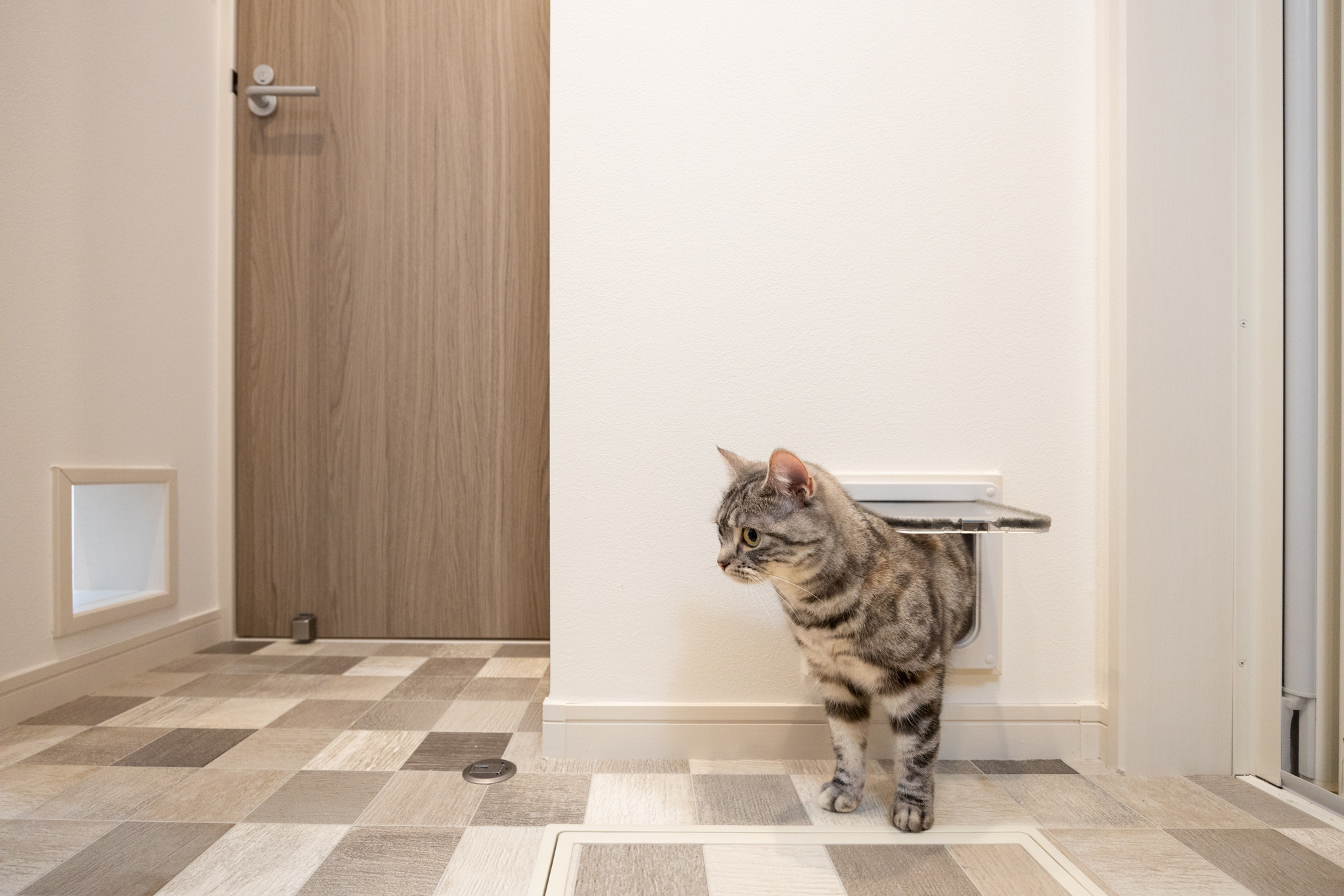 共用部にはオートロックと宅配ボックスを備え、防犯性と利便性も確保。ねことの暮らしを楽しみながら、安心して日常を送れる環境を整えた。