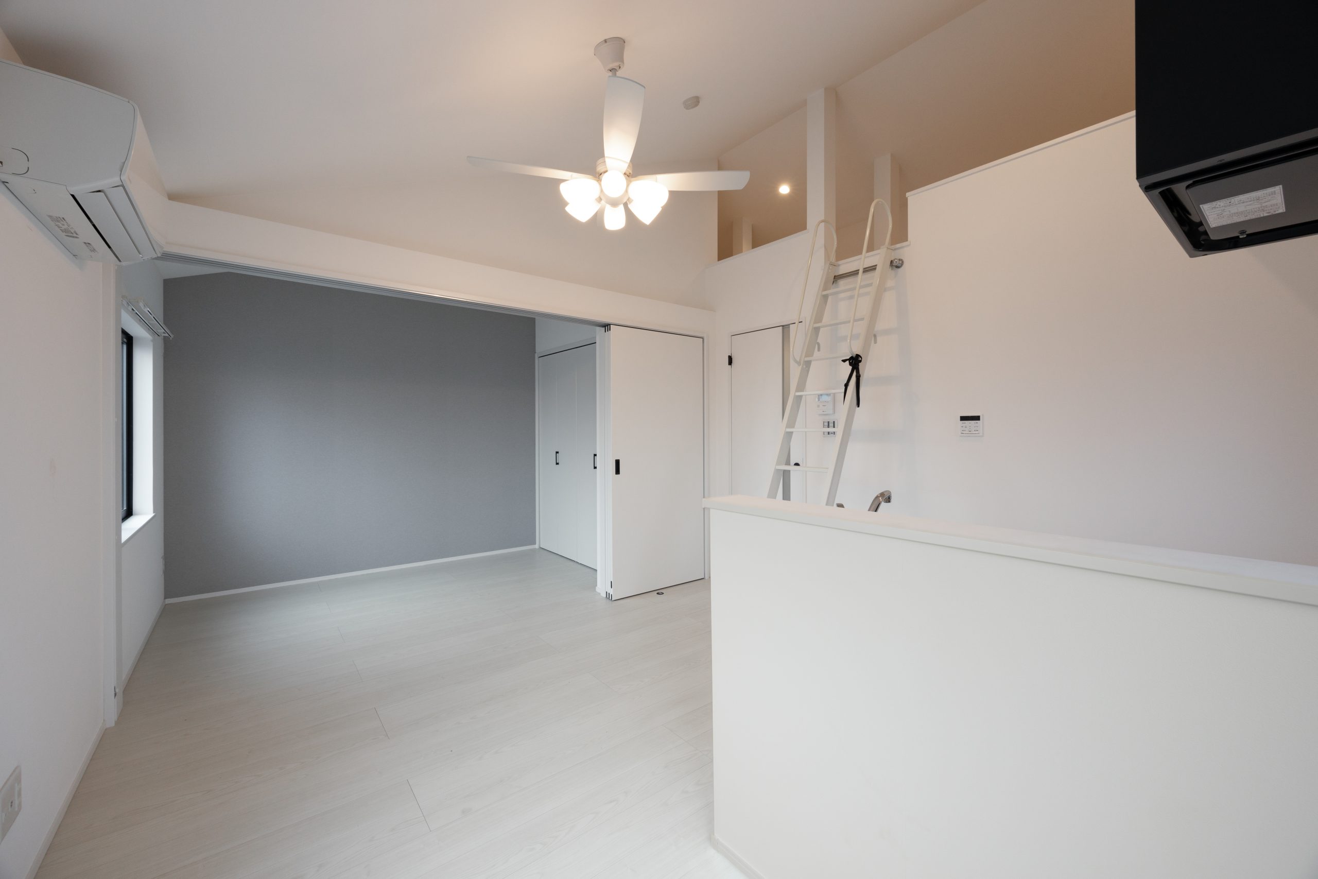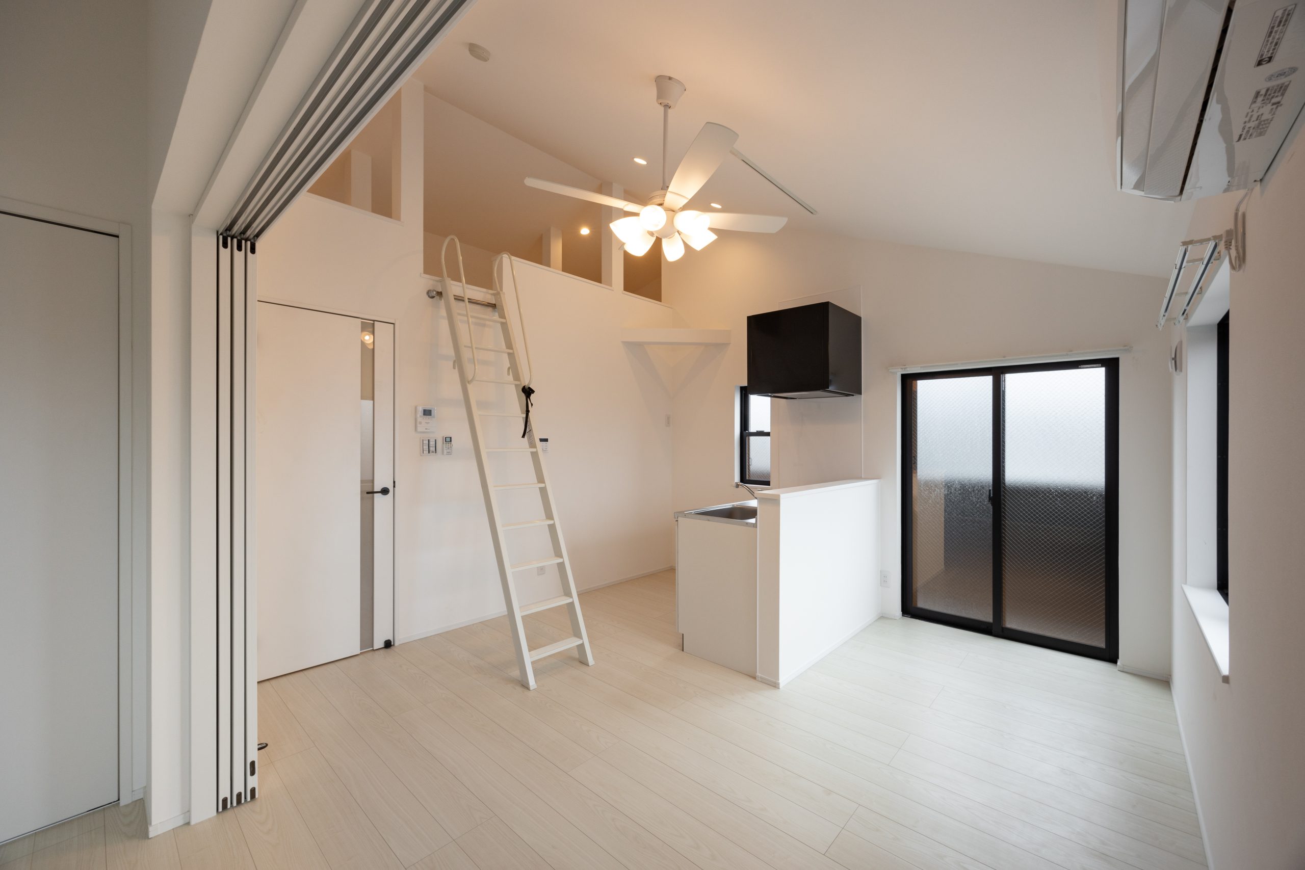 2階・3階は1LDKとし、生活空間と寝室を分けたい入居者ニーズに対応。3階住戸にはロフトを設け、収納や趣味スペースなど多目的に活用できる余白を確保した。全住戸にバルコニーを備え、専有面積以上の広がりを感じられる計画としている。