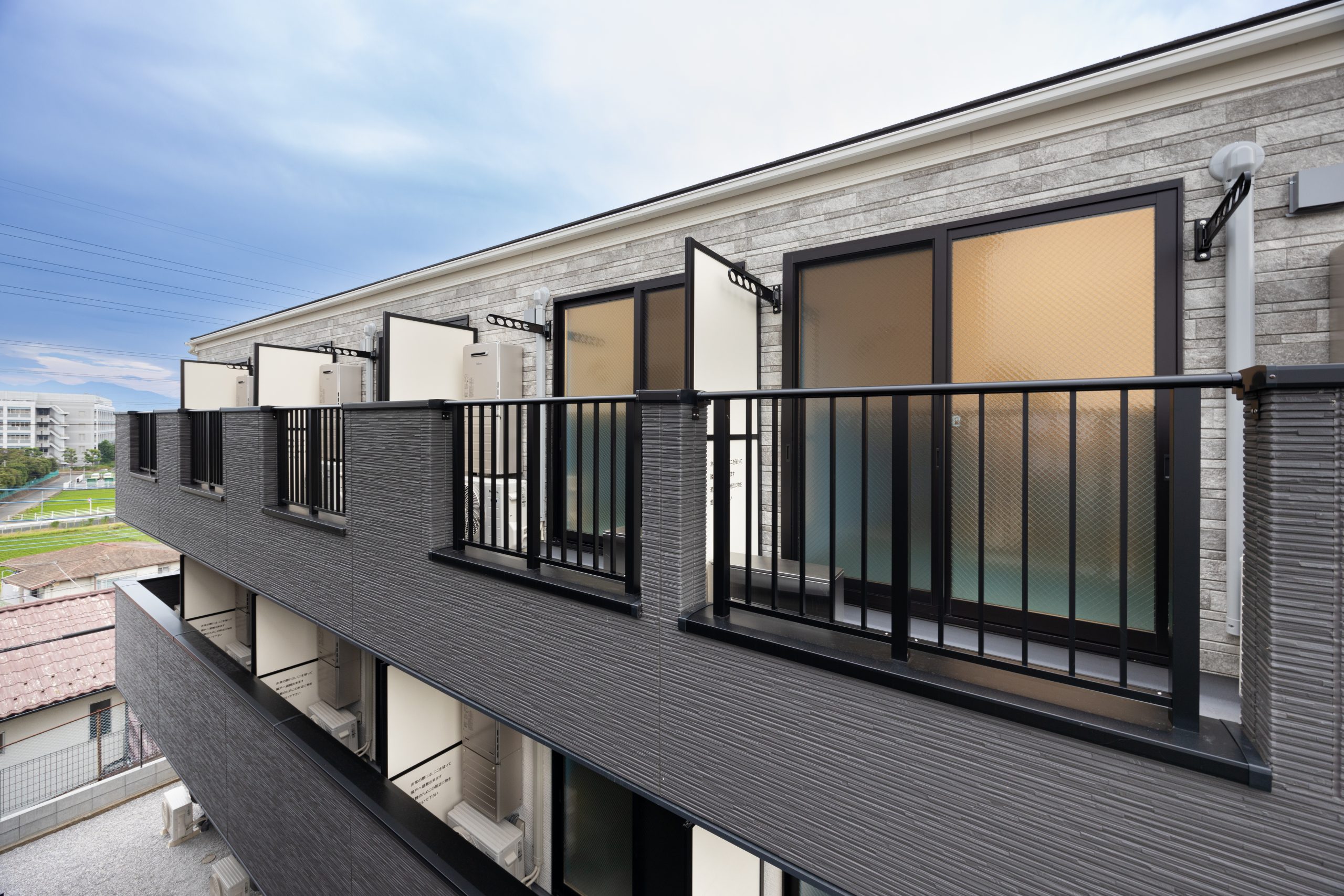 本物件は、神奈川県海老名市におけるアパート建築施工事例として、2人入居対応シリーズ「アザーレ・ディオン」の一棟として設計された共同住宅である。海老名駅周辺の立地特性を踏まえ、「ひとりでも、ふたりでも“ちょうどいい”」というシリーズ共通コンセプトを軸に、住戸ごとに異なる空間の魅力を持たせている。