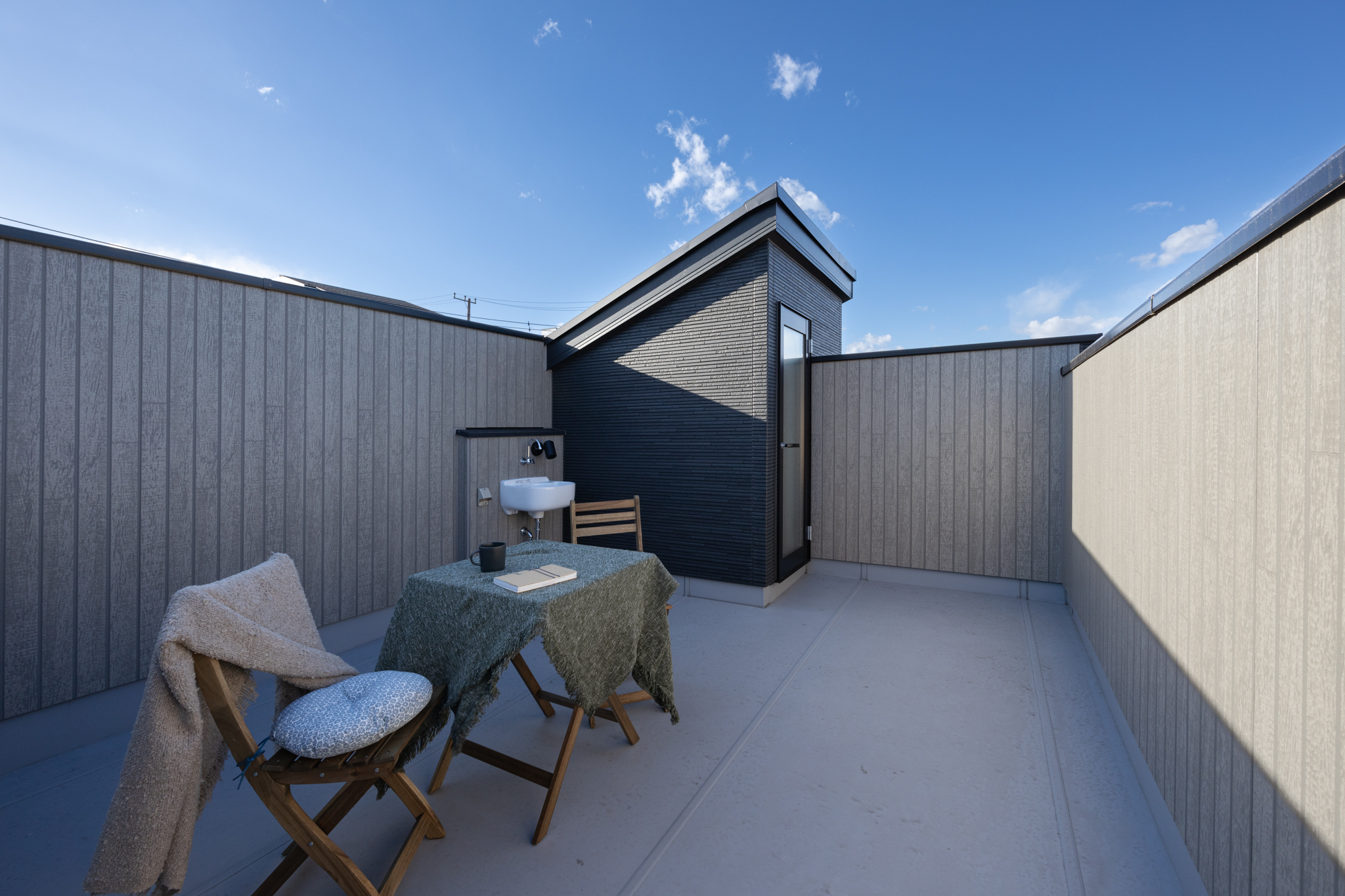 さらに、ルーフバルコニーを設けることで、屋外も含めた暮らしの広がりを確保。アウトドアリビングや趣味のスペースなど、住む人の発想次第で自由に使える余白となっています。