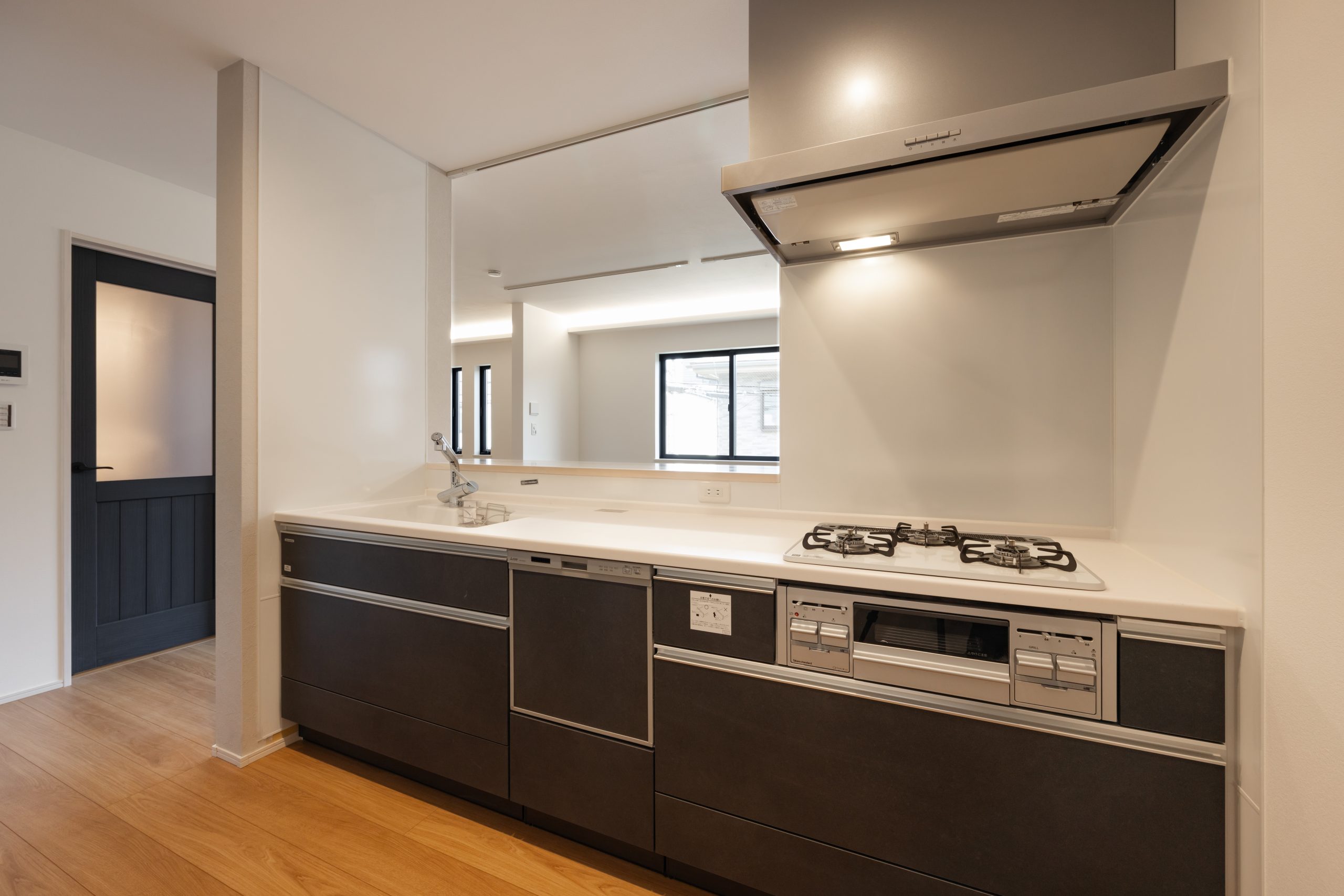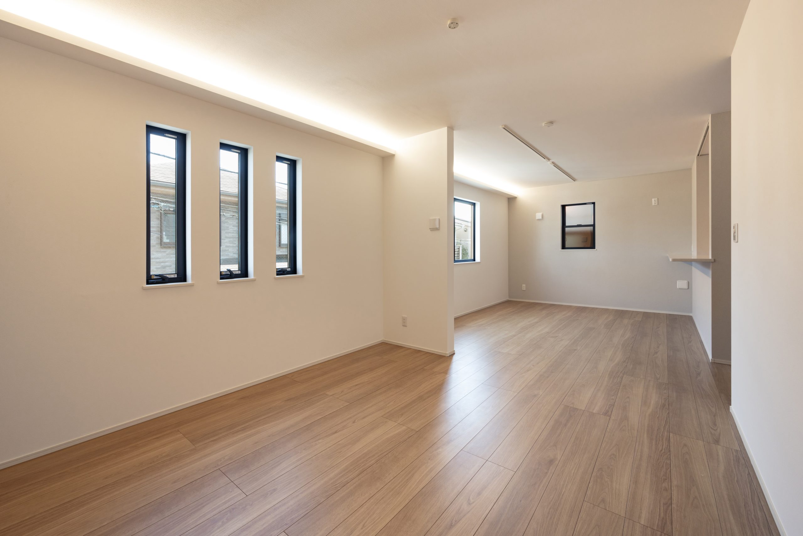 対面式キッチンと間接照明を取り入れたリビングは、家族の気配が緩やかにつながる空間。立地条件・動線・防犯性・趣味性を一体で整理した、神奈川県鎌倉市における建売住宅施工事例の一つとして、暮らし方まで提案する住まいとなっている。
