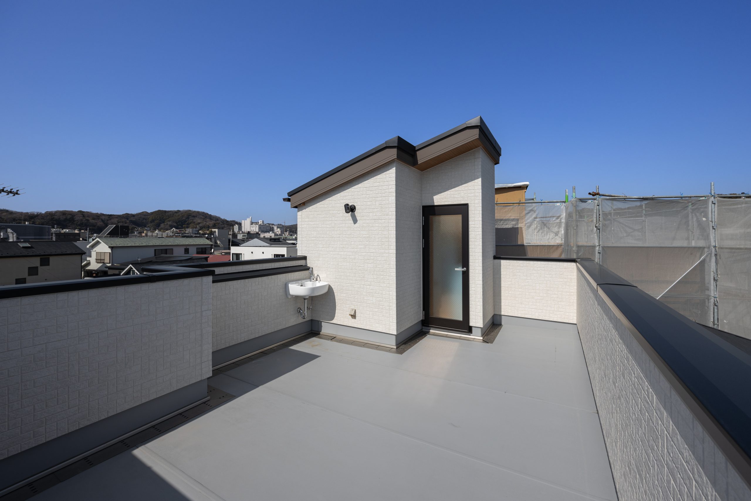 室内は廊下幅にゆとりを持たせ、2階には来客を意識したニッチを配置。3階の屋上には電源を備え、BBQなどの利用も想定している。屋外空間を「特別」ではなく「日常」に組み込む構成が、この建売住宅の大きな魅力だ。
