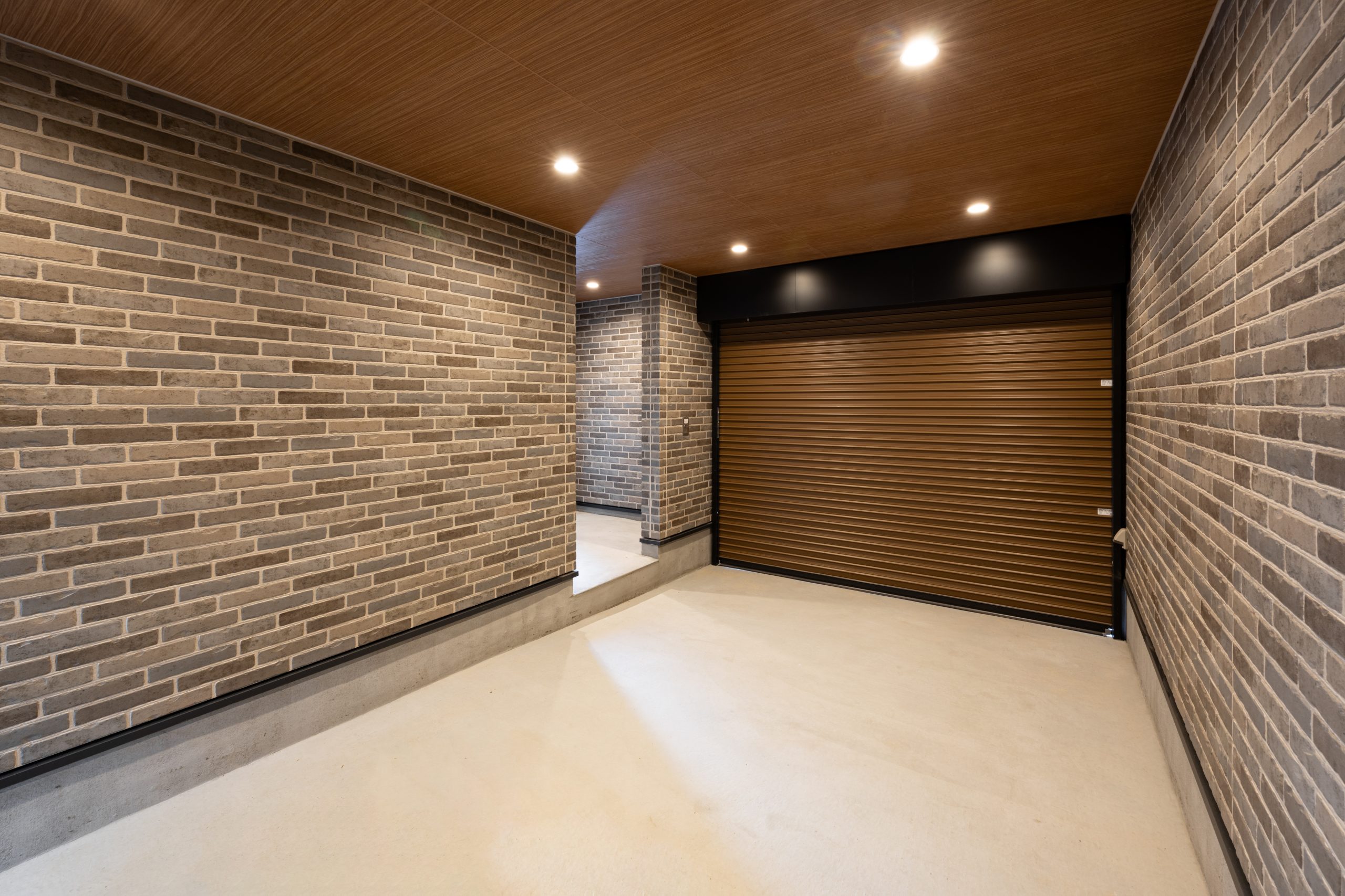 人通りの多いエリアに配慮し、ガレージには電動シャッターを採用。外部からの視線を遮りながら、防犯性とプライバシーを確保している。ガレージ内部から住戸内へつながる勝手口も設け、日常動線を効率化。アウトドア用品やカー用品の収納スペース、建物裏側へ回れる外部動線も整備し、趣味と生活が無理なく両立する設計とした。