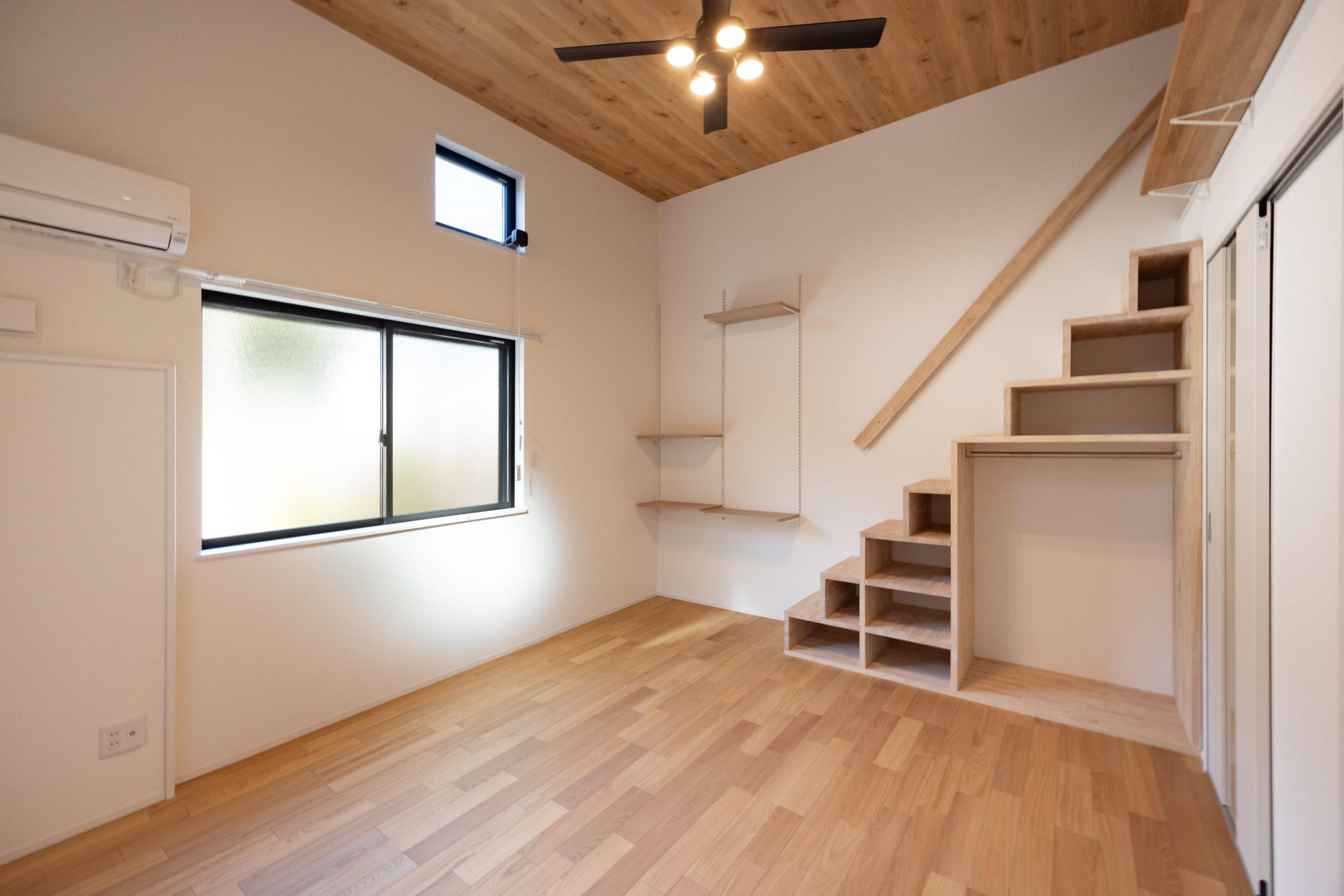 住戸構成は1Kと1LDKの2タイプ。入居者様の様々なライフスタイルに対応できる柔軟な間取りとし、全住戸にロフトを設けた。1Kには安定感のある家具階段を採用し、ロフトは収納や趣味空間として活用可能。床面積以上の広がりを感じさせる構成となっている。
