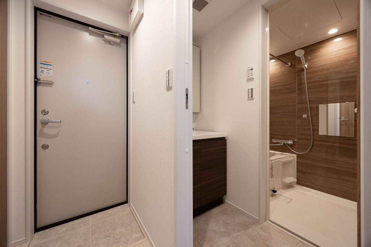 断熱材(自社比)により遮音性・断熱性に配慮し、外部環境の影響を受けにくい室内環境を確保。オートロックも備え、防犯面への安心感にも配慮した。