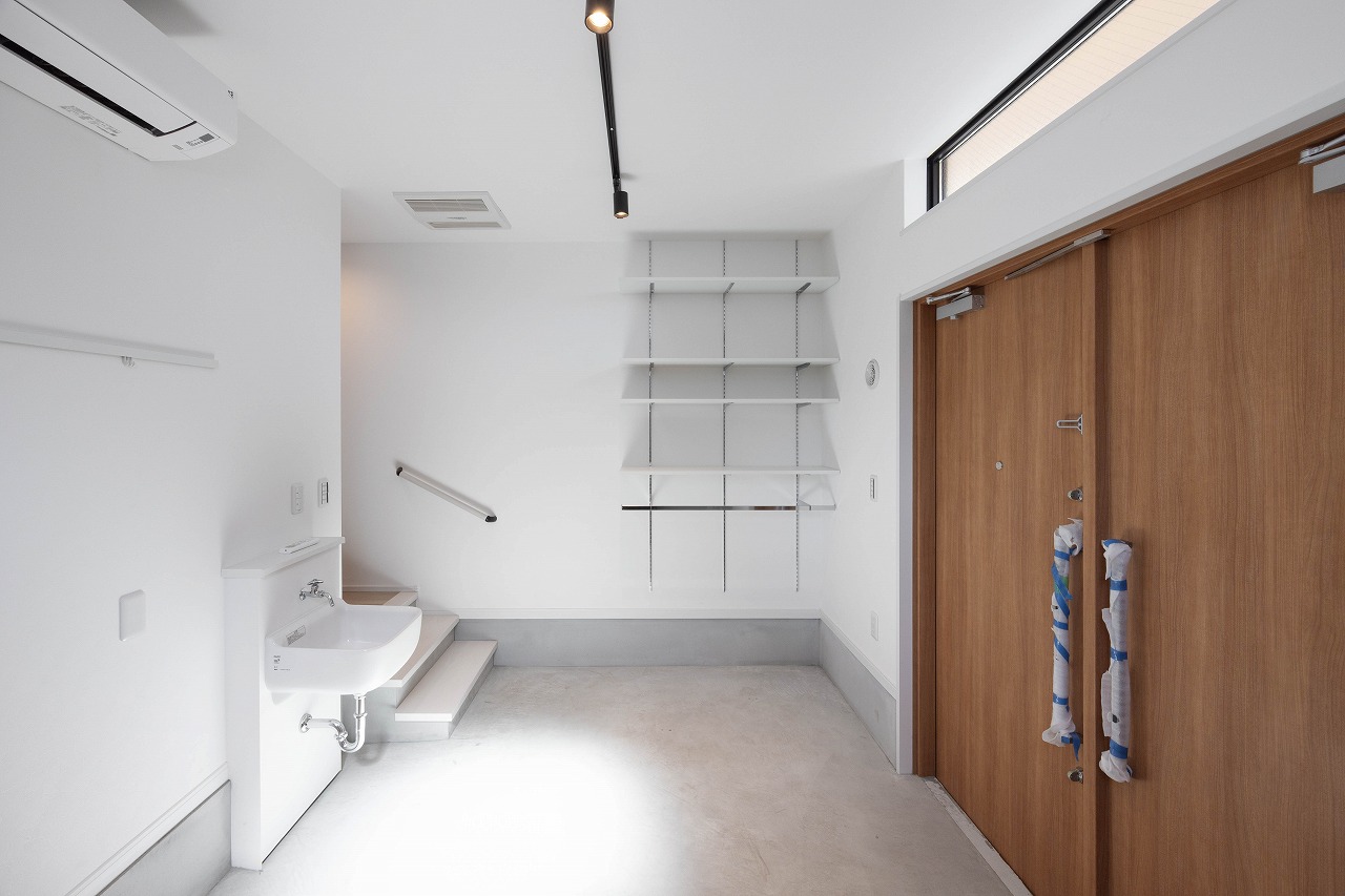 あわせて、トイレ・浴室・洗濯機置場などの水回りを1階に集約。作業後すぐに生活空間へ移行できる動線とし、趣味と日常が分断されない構成とした。
