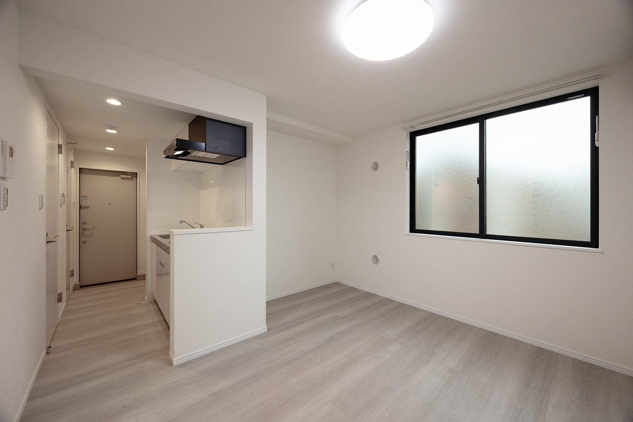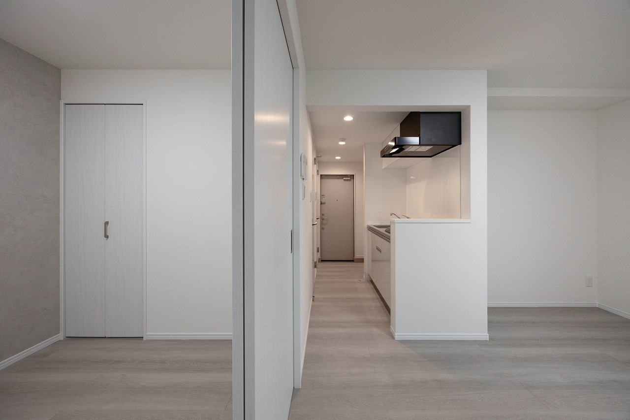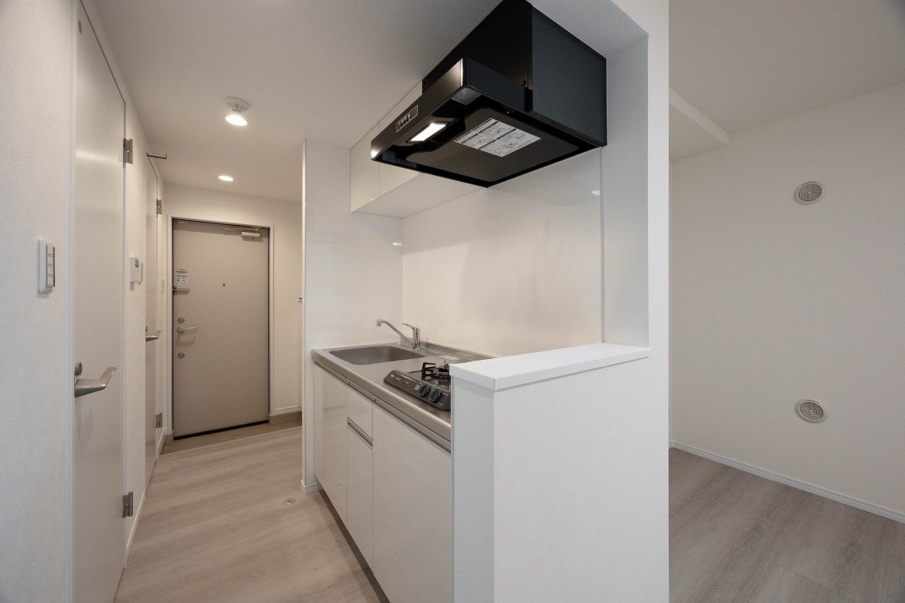 駅から徒歩4分というアクセス性に加え、ショッピングモールや大型スーパーが近接する立地条件を活かし、単身者ニーズに特化した共同住宅として整えた。
