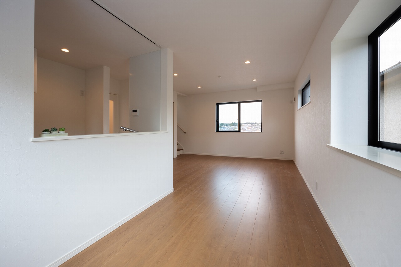 東京都町田市の新築戸建て施工事例として、眺望を活かした立地条件と、日常の使いやすさを考えた間取り計画が特徴の一棟である。