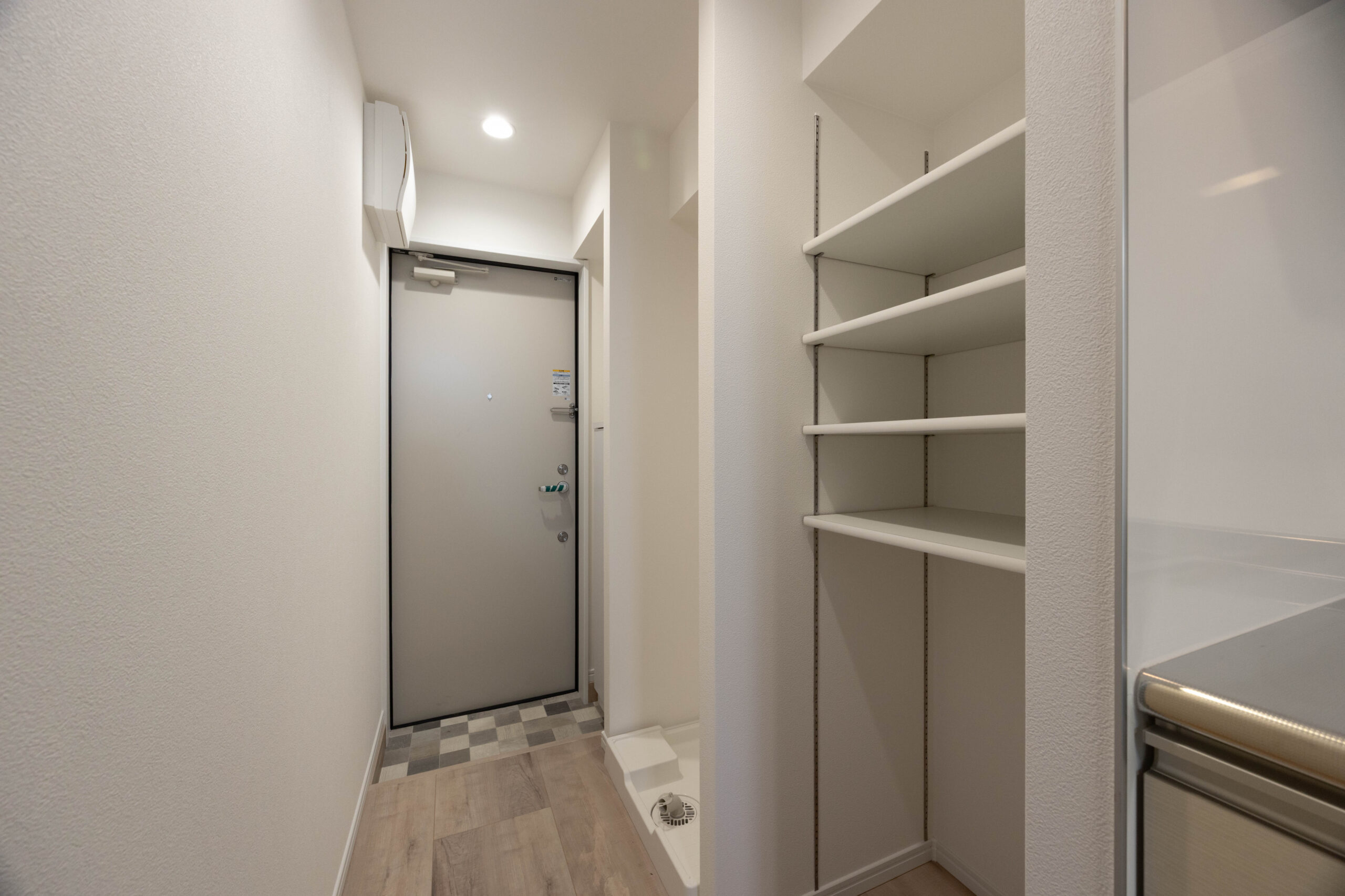1LDKタイプには、キッチン横に可動棚付きの収納スペースを設けた住戸と、ウォークインクローゼットを備えた住戸の2種類を用意。それぞれ異なる使い方に対応できる構成となっている。