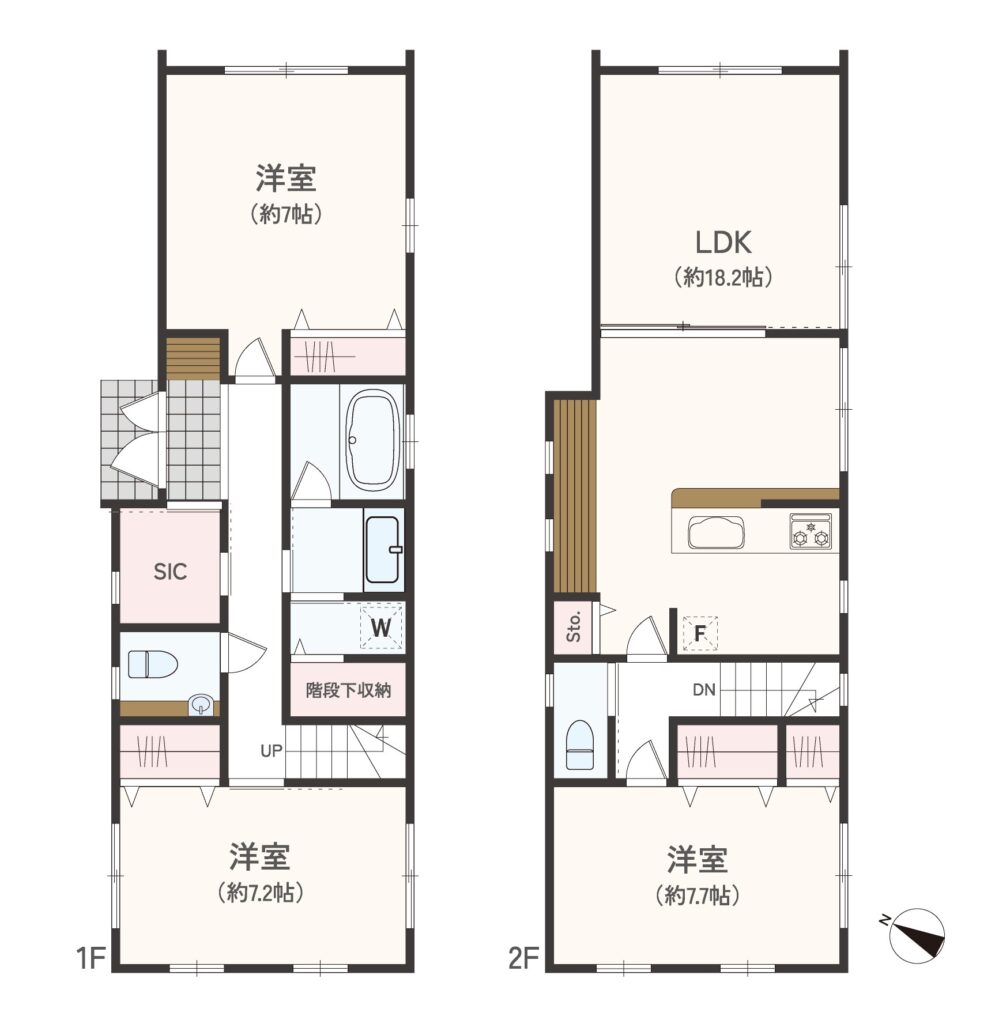 家族用と来客用の動線を分けられる設計で、生活感を抑えた空間づくりが可能。