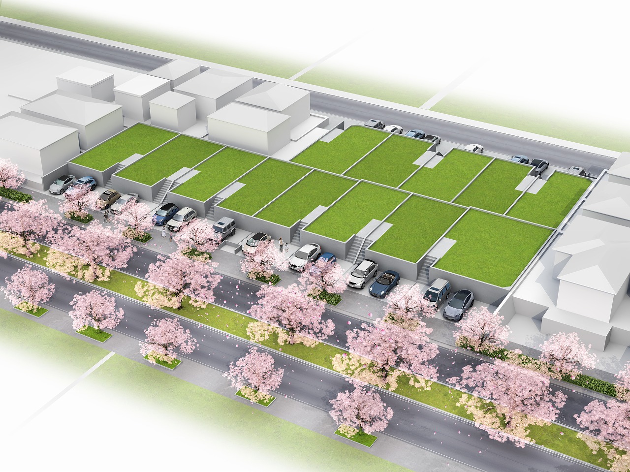 | 備考 | ※司法書士・土地家屋調査士は売主指定とさせていただきます。 ※図面と現況が異なる場合は現況優先といたします。 ※北側2区画は被越境の覚書を承継する必要があります。 ※この土地は、土地売買契約締結後3ヶ月以内に当社と建物の建築請負契約を締結することを条件に販売します。この期間内に建築請負契約が締結されなかった場合は、土地売買契約は白紙となり、受領した手付金等の土地代金はすべてお返しいたしあます。 ※完成予定パース及び参考プラン間取図は、図面を基に書き起こしたのもので、実際とは異なります。詳細は設計図書をご確認ください。 ※分筆前につき、面積の増減がある場合がございます。 | ||