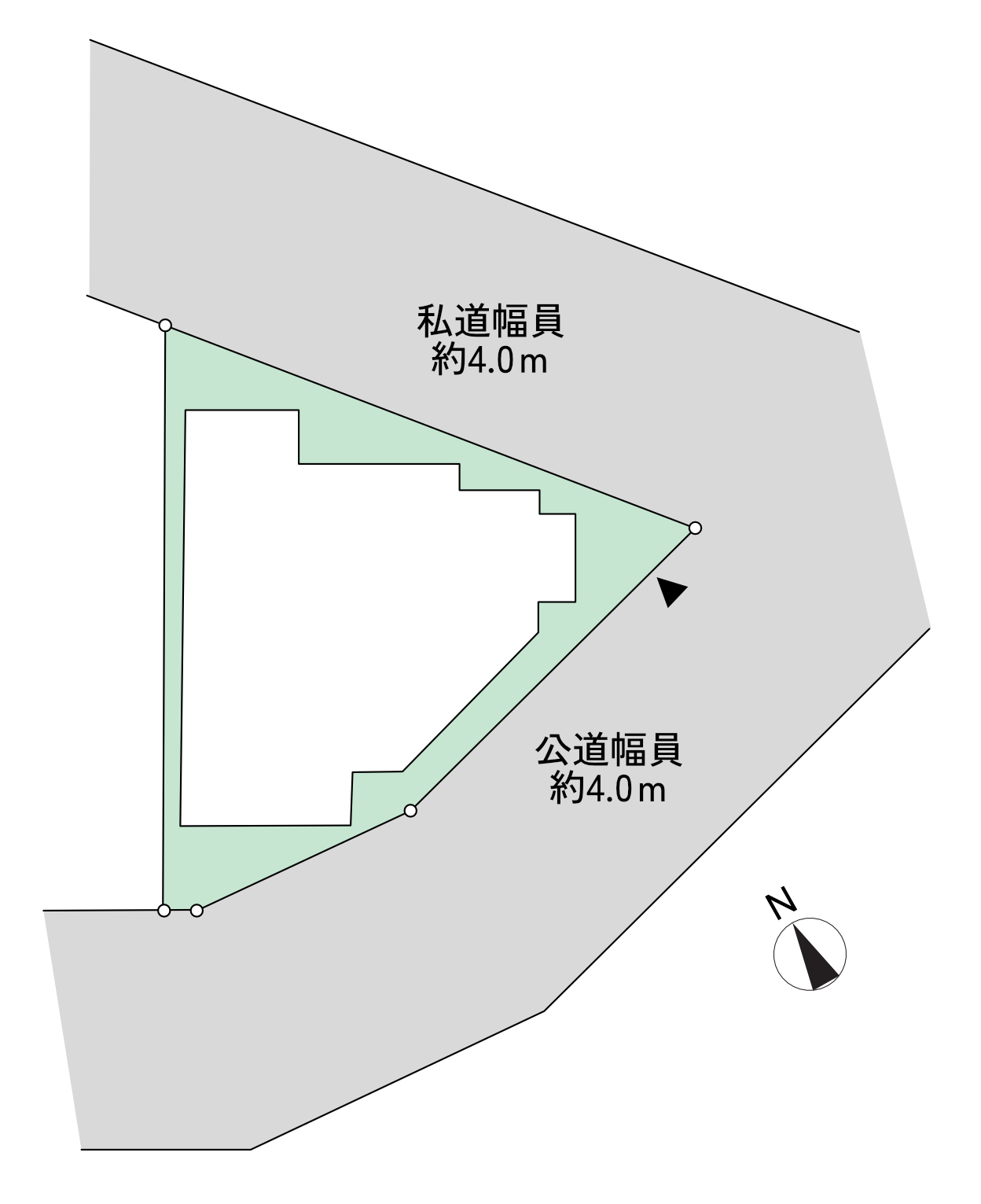 | 接道 | 南側約4.0m公道 北東側約4.0m私道 | 設備 | 都市ガス、本下水、公営水道 |