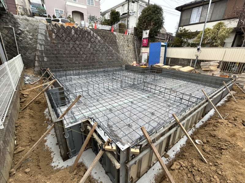 川崎市麻生区の新築戸建て、基礎工事が進行中です。