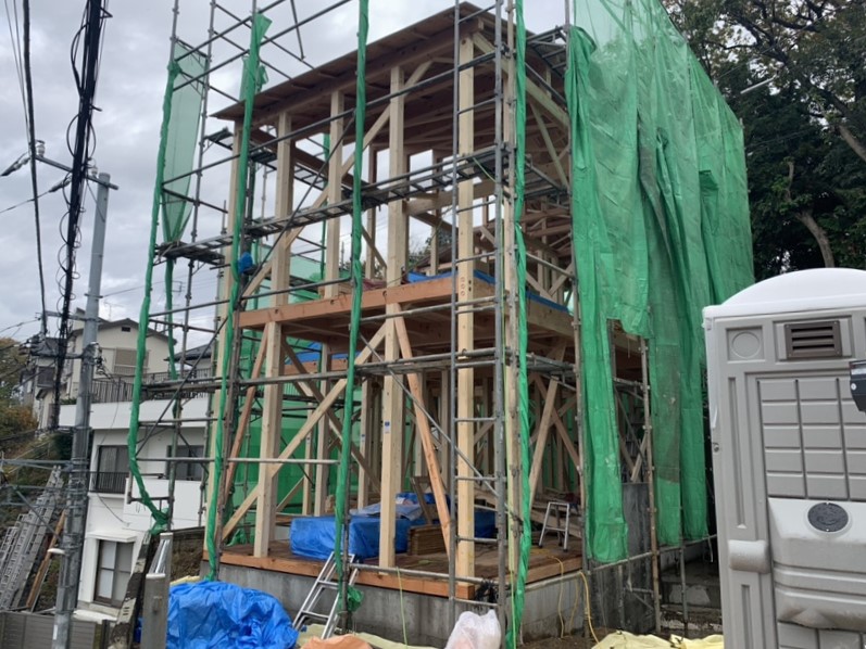 川崎市麻生区、和光大学近くの住宅街にて、木造2階建ての新築一戸建て住宅の建築を開始しました。
