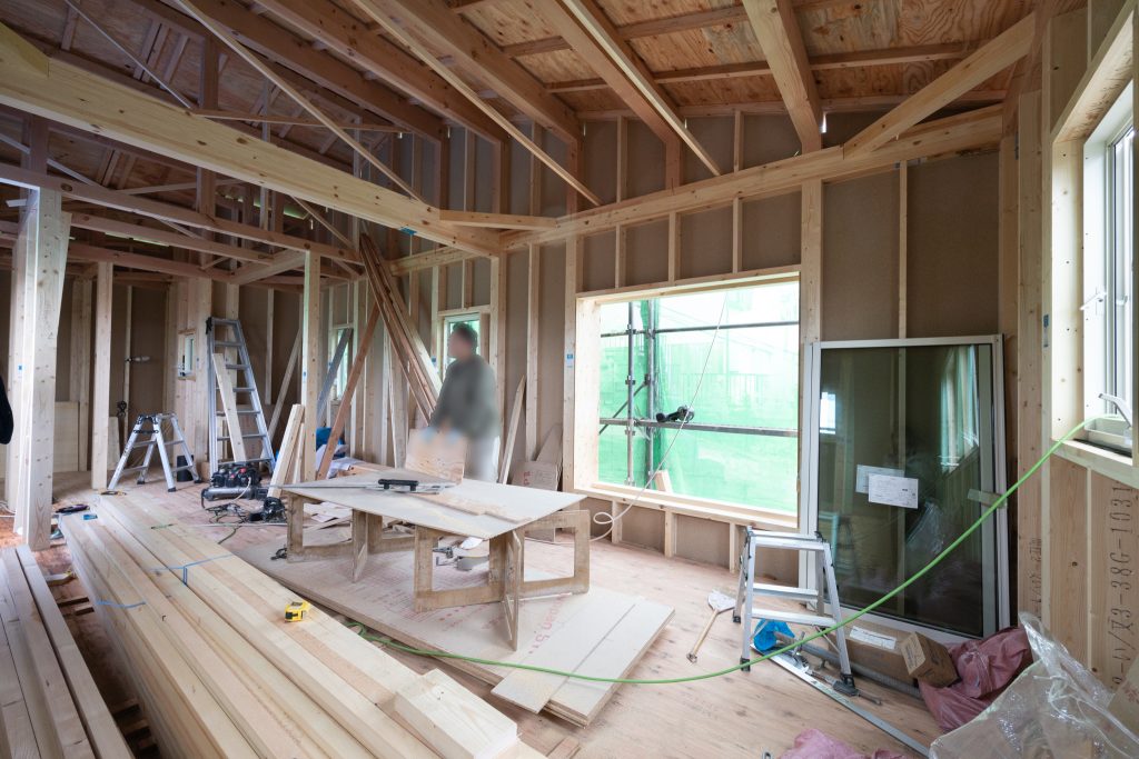 2階LDKの木工事も進行中。