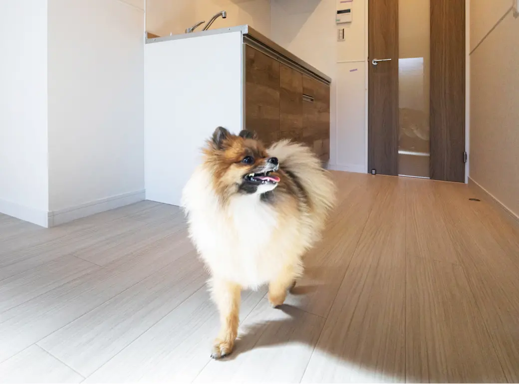 室内には滑りにくく、犬の足腰にやさしい高品質クッションフロアを採用。防滑性に優れ、愛犬が走り回っても関節への負担を軽減する仕様です。快適性と安全性を両立した上質な床材です。